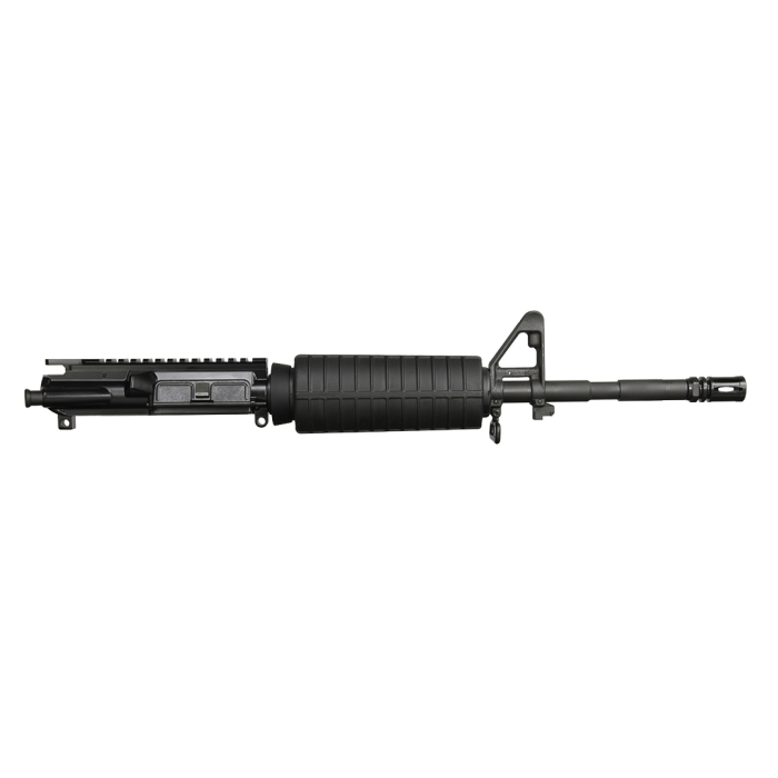 Our 14.5" Chrome Line M4 Flattop Upper starts with our 5.56 chambered 14.5" M4 barrel made from 4140 chrome moly steel utilizing the CAR length gas system. This chrome lined barrel is attached to our flattop upper and uses our double heat shield M4 handguards. The upper is fully assembled and all parts are completely made in the USA.