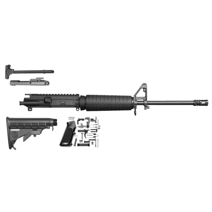 Our 16" Chrome Line Lightweight Flattop Kit starts with our 5.56 chambered 16" lightweight barrel made from 4140 chrome moly steel utilizing the CAR length gas system. This chrome lined barrel is attached to our flattop upper and uses our CAR handguards. The upper is fully assembled with our charging handle and semi-auto bolt carrier group. To finish out your stripped lower receiver (not included) we use our standard lower parts kit and 6-position M4 buttstock assembly. All parts are completely made in the USA.