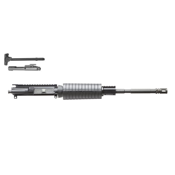 Our 16" M4 Flattop Complete Upper starts with our 5.56 chambered 16" M4 barrel made from 4140 chrome moly steel utilizing the CAR length gas system. This barrel is attached to our flattop upper and uses our double heat shield M4 handguards. The upper is fully assembled with our charging handle and semi-auto bolt carrier group. All parts are completely made in the USA.