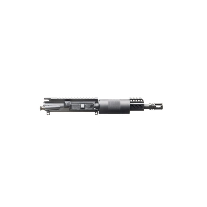 Our flattop upper starts with a 5.56 NATO chambered 1-9 twist 7.5” barrel made from 4140 chrome moly steel utilizing the pistol gas system and same-plane gas block for ultimate performance and ease of use. This barrel is mounted to our mil-spec flattop upper and uses our pistol-length aluminum free float handguard. The upper is fully assembled and all parts are completely made in the USA.
