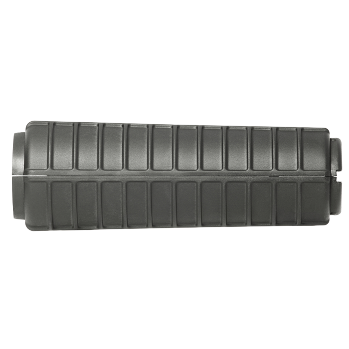 Standard Mil Spec polymer CAR length handguards with aluminum heat shields.